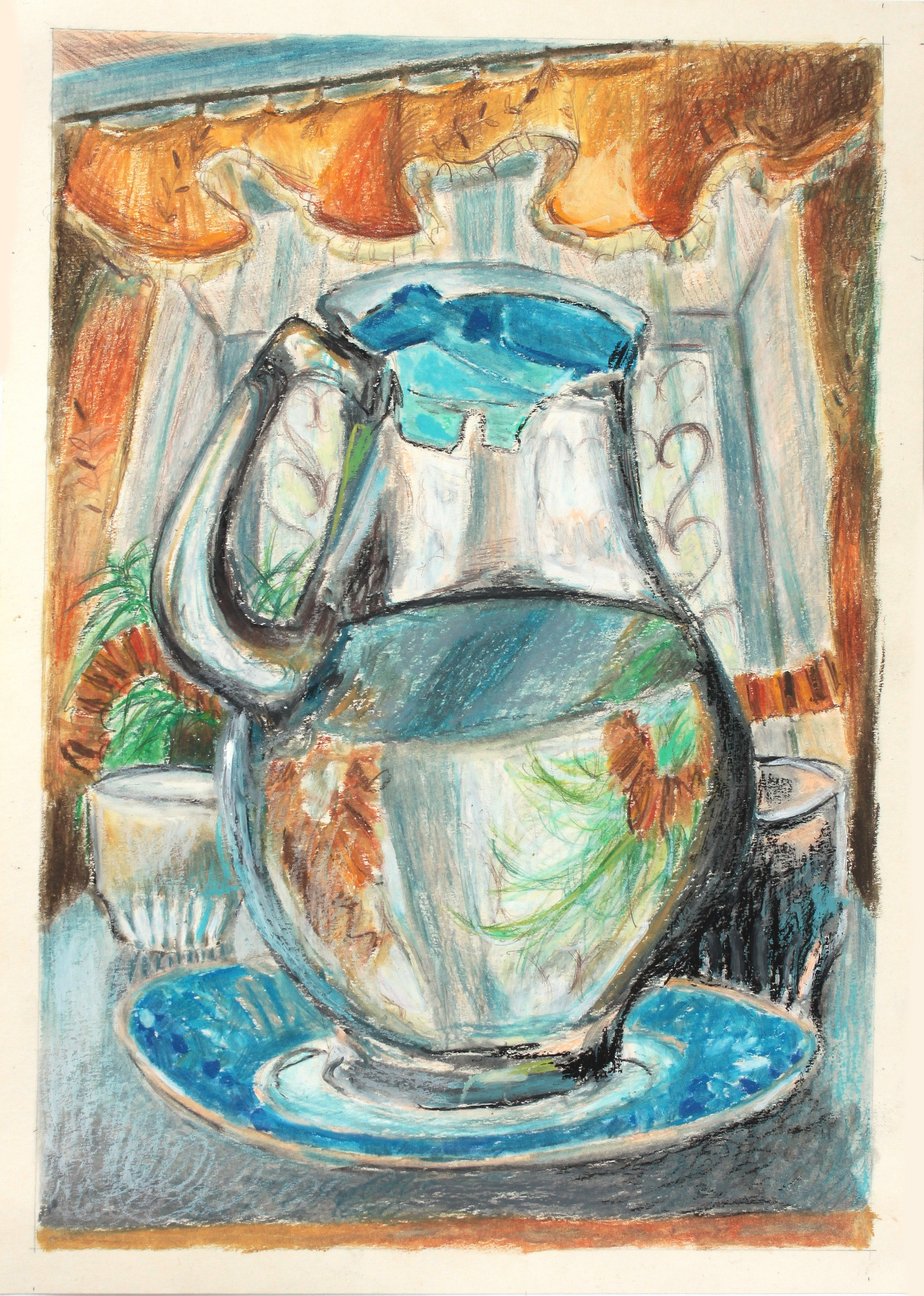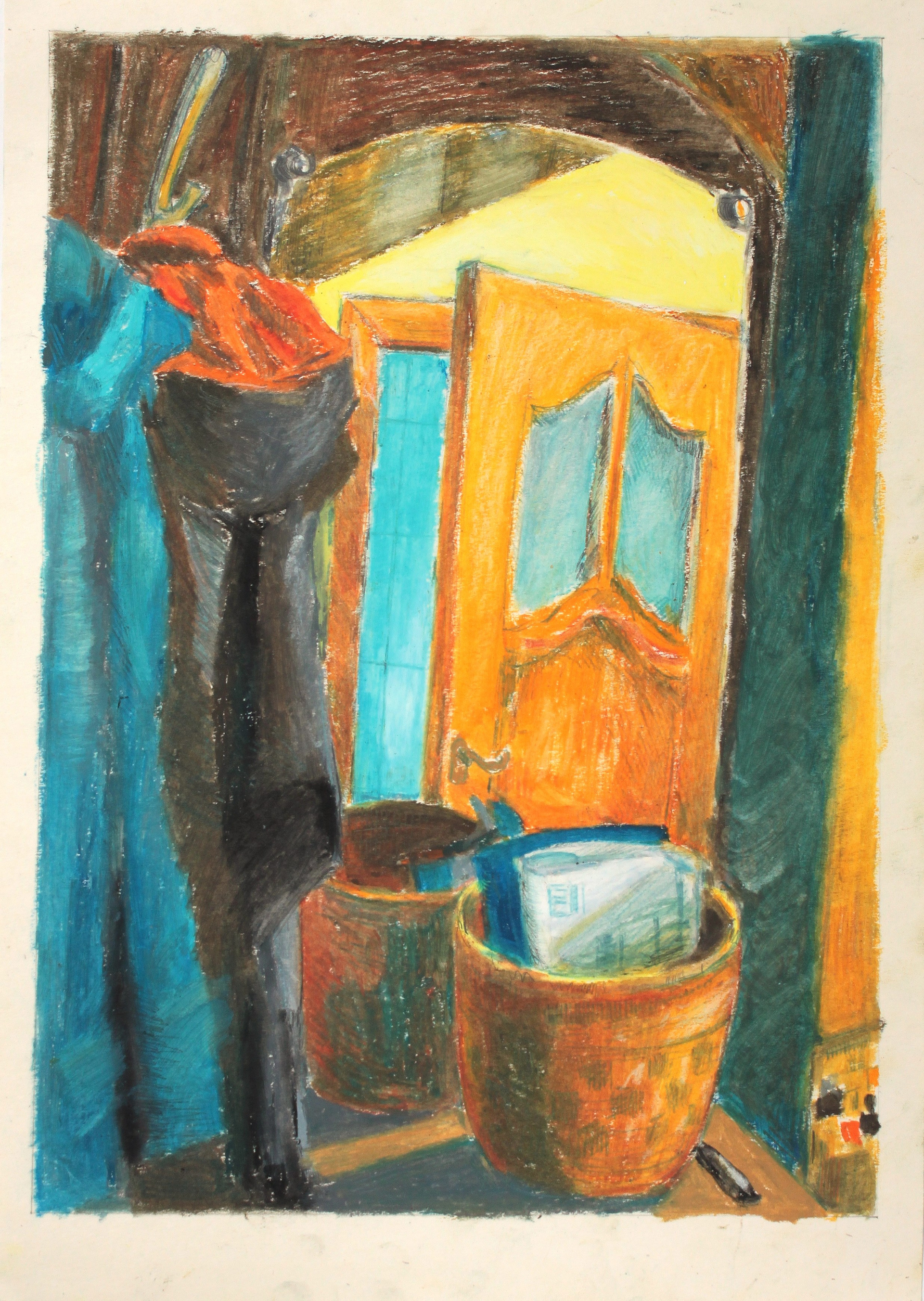 Материалы: бумага, масляная пастель, цветные карандаши, графитный карандаш